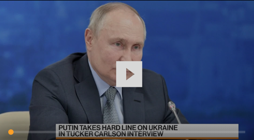观看:普京表示他的国家尚未在乌克兰实现其目标。来源:塔克·卡尔森网络自战争开始以来,他与西方媒体人士的首次采访旨在吸引唐纳德·特朗普的保守支持者,而这些人正是卡尔森的核心观众。信息很明显——停止向乌克兰提供武器供应,以便俄罗斯取得胜利,然后“我们将能够讨论一些条款。”