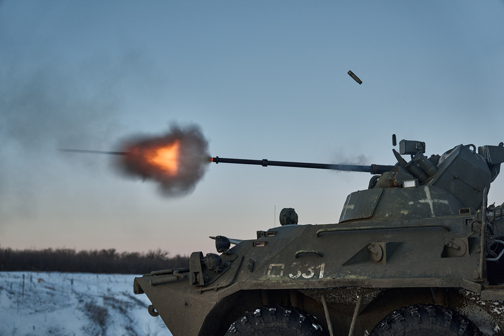 士兵在乌克兰利曼地区校准武器。摄影师:科斯蒂安廷·利贝罗夫/Libkos/Getty Images
