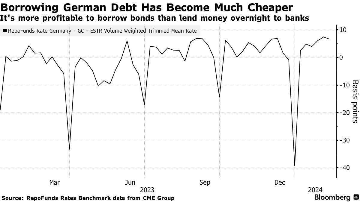 不到两年前,抵押品短缺严重,以至于德国短期债券的来源成本比2008年雷曼兄弟控股公司倒闭时还要高。为了缓解这种情况,德国财政机构被迫向市场提供更多自己的债券持有。