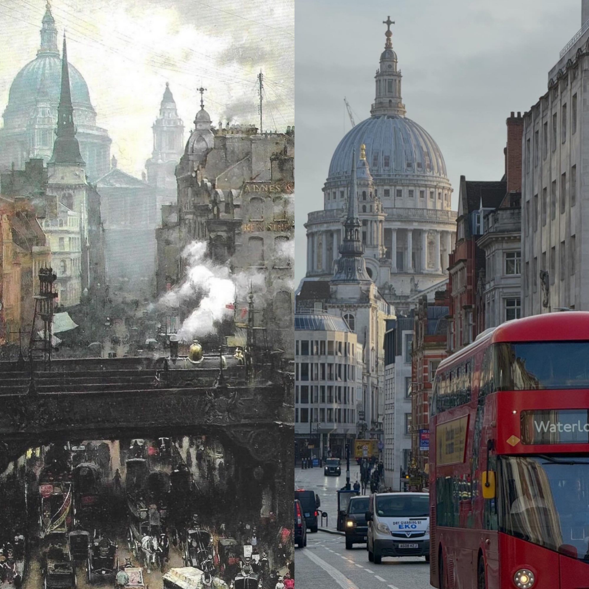 通常,我上班时会直接走到泰晤士河边散步。但是前几天,我决定在弗利特街左转——这条街建在一条河上——然后从那里去城市。我在去年十二月中走过同样的路线,记得那里有一幅晚维多利亚时期的画作。我在下面并列了威廉·洛斯代尔(William Logsdail)1884年的作品,这样你就可以看到这140年来的变化。