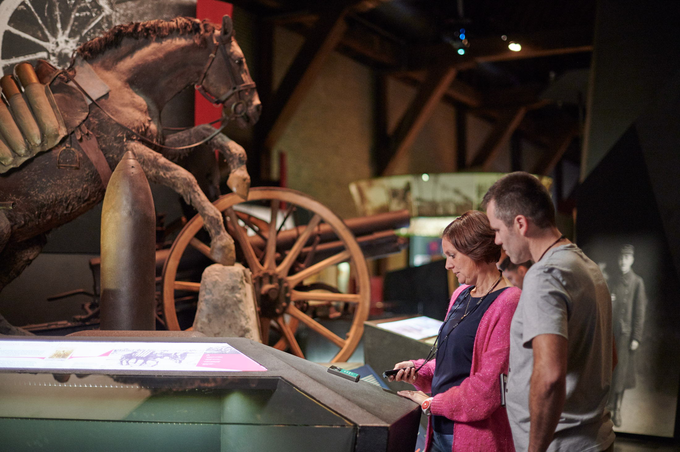 家庭观看佛兰德斯战场博物馆的展品。摄影师:WWW.MARCWALLICAN.BE 佛兰德斯战场博物馆,伊珀尔佛兰德斯战场博物馆位于伊珀尔主要广场上的一座宏伟建筑内,是一个相当反战的博物馆,它考察了第一次世界大战在比利时西部的残酷战壕战争,战争在这里持续了三年。从1914年的德国入侵到多次战斗,包括对芥子气的首次使用,一直追踪到盟军成功的解放攻势。博物馆的最后一部分展示了这座被摧毁的城市是如何拒绝温斯顿·丘吉尔的建议,即将其永久留在废墟中作为纪念,并开始重建的。