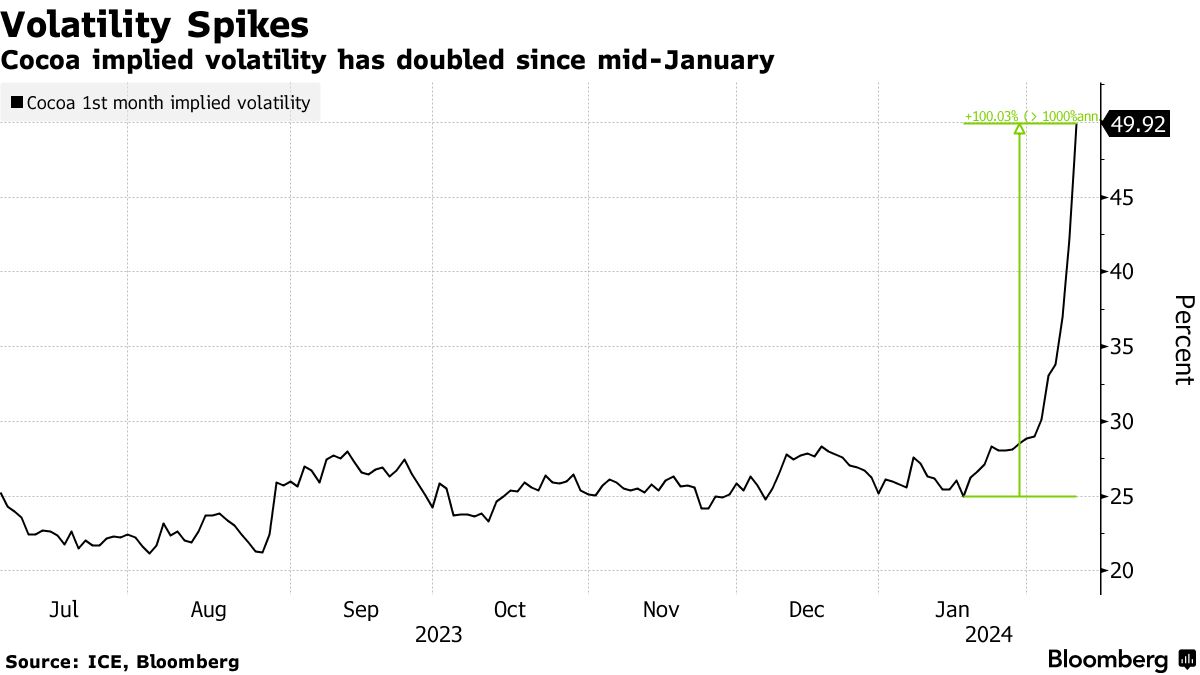 交易商纷纷涌入可可期权市场,随着期货价格飙升至创纪录水平-彭博社