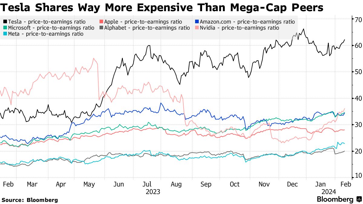 特斯拉的支持者表示,该公司作为唯一盈利的大规模纯电动汽车制造商,使其有资格加入精英俱乐部。尽管预计需求在短期内将下降,但专家普遍预计电动汽车最终将主导汽车行业。对于任何愿意押注未来的人来说,特斯拉仍然是唯一真正的选择,这也解释了其高企的市值以及公司股价的走势——在2021年飙升50%,在2022年暴跌65%,然后在2023年飙升102%。