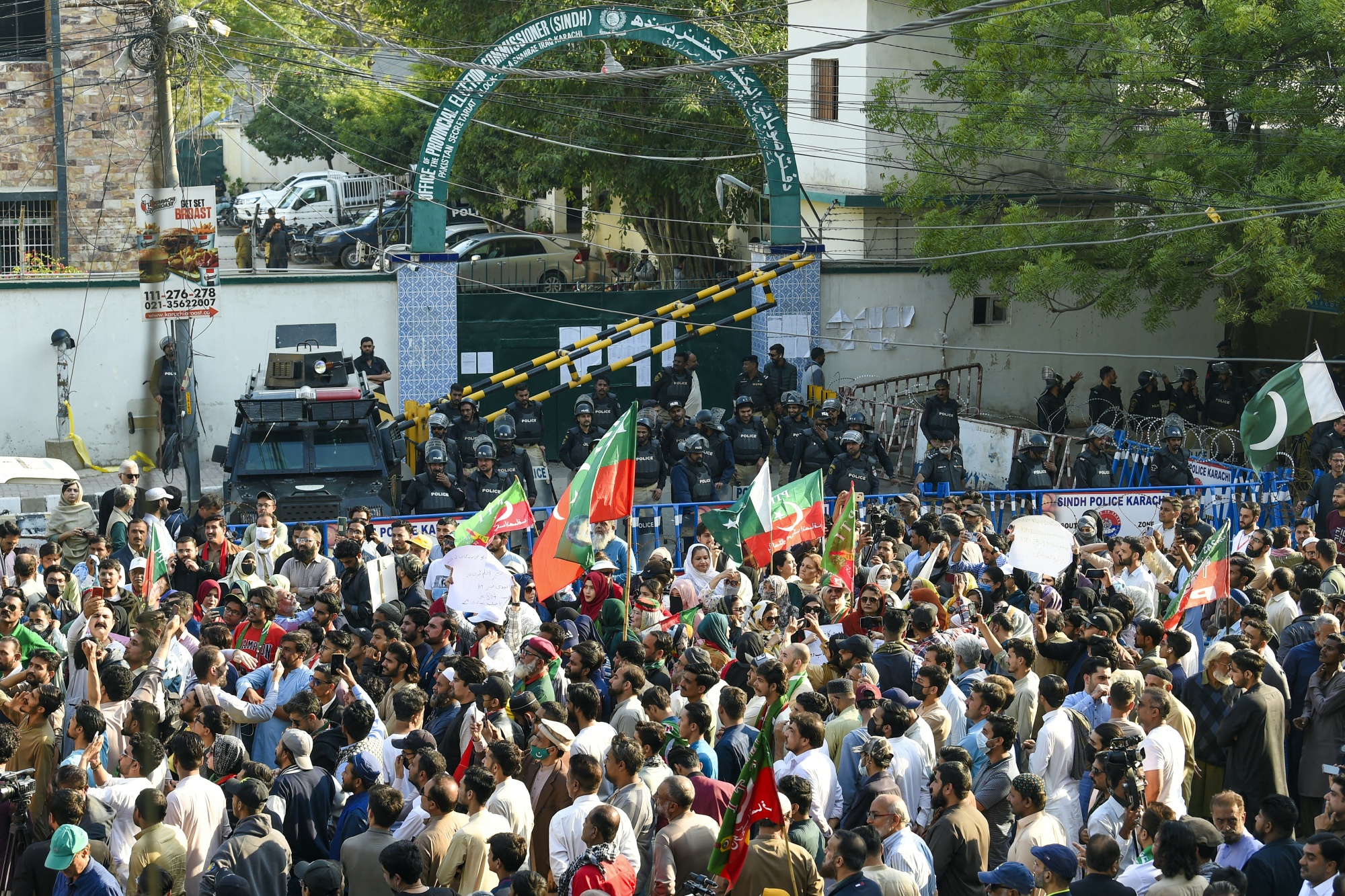 伊姆兰·汗的巴基斯坦正义运动党支持者在2月11日在卡拉奇举行抗议活动。