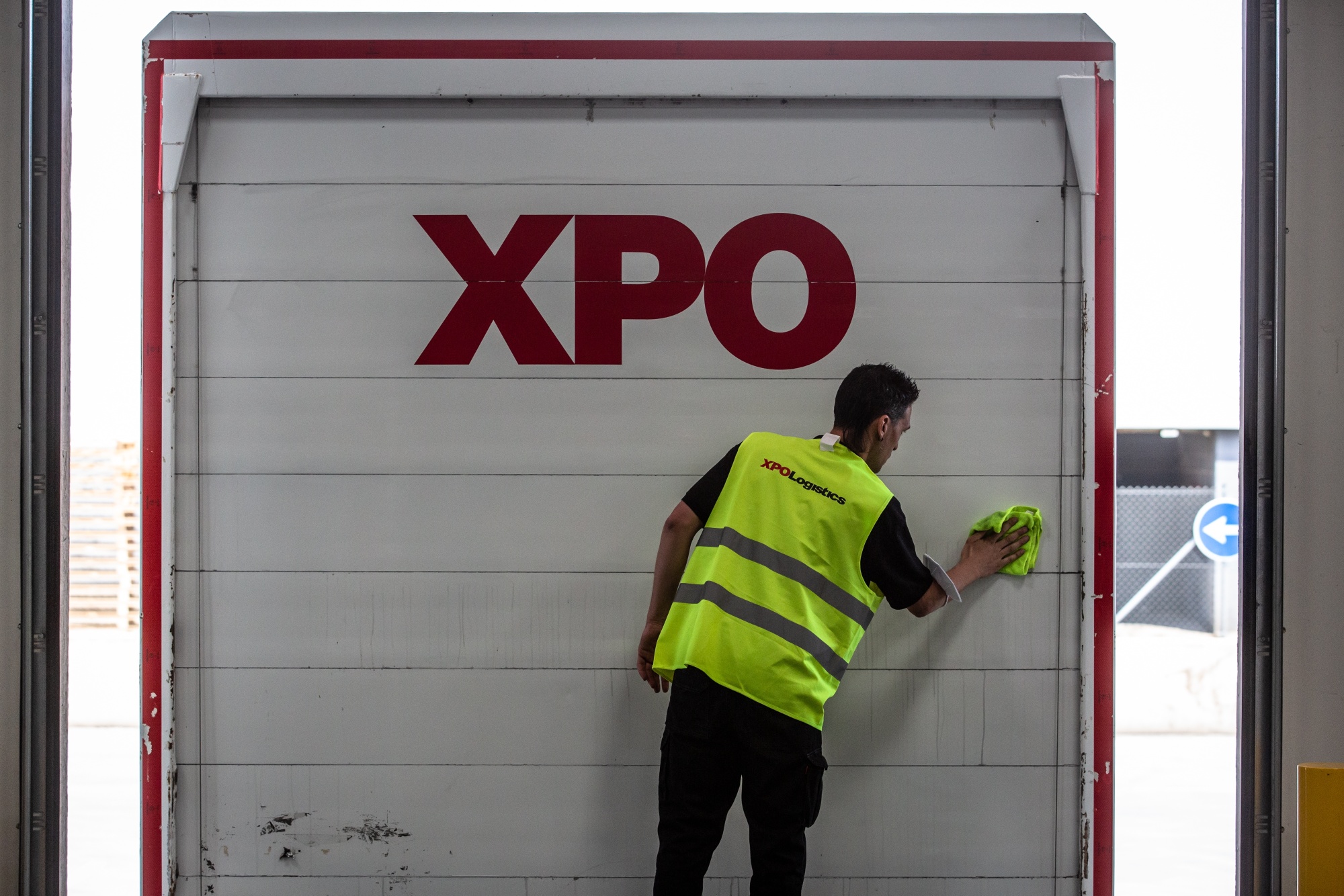 西班牙巴塞罗那的 XPO Logistics 卡车拖车在公司的分销中心。