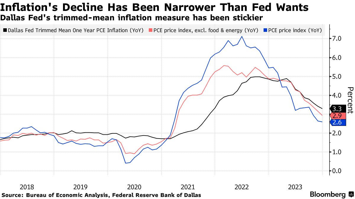 达拉斯联储制定的一项消除最大价格变动的通胀衡量指标显示,去年12月通胀率年增长3.3%,明显高于政府的个人消费支出价格指数的2.6%增幅。