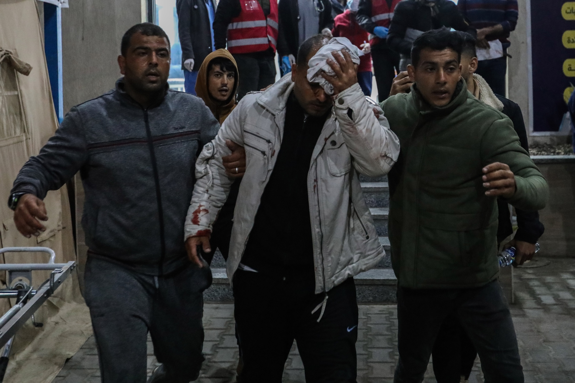 一名受伤男子在2月12日的拉法空袭后被带往科威特医院。摄影师:Ahmad Hasaballah/Getty Images