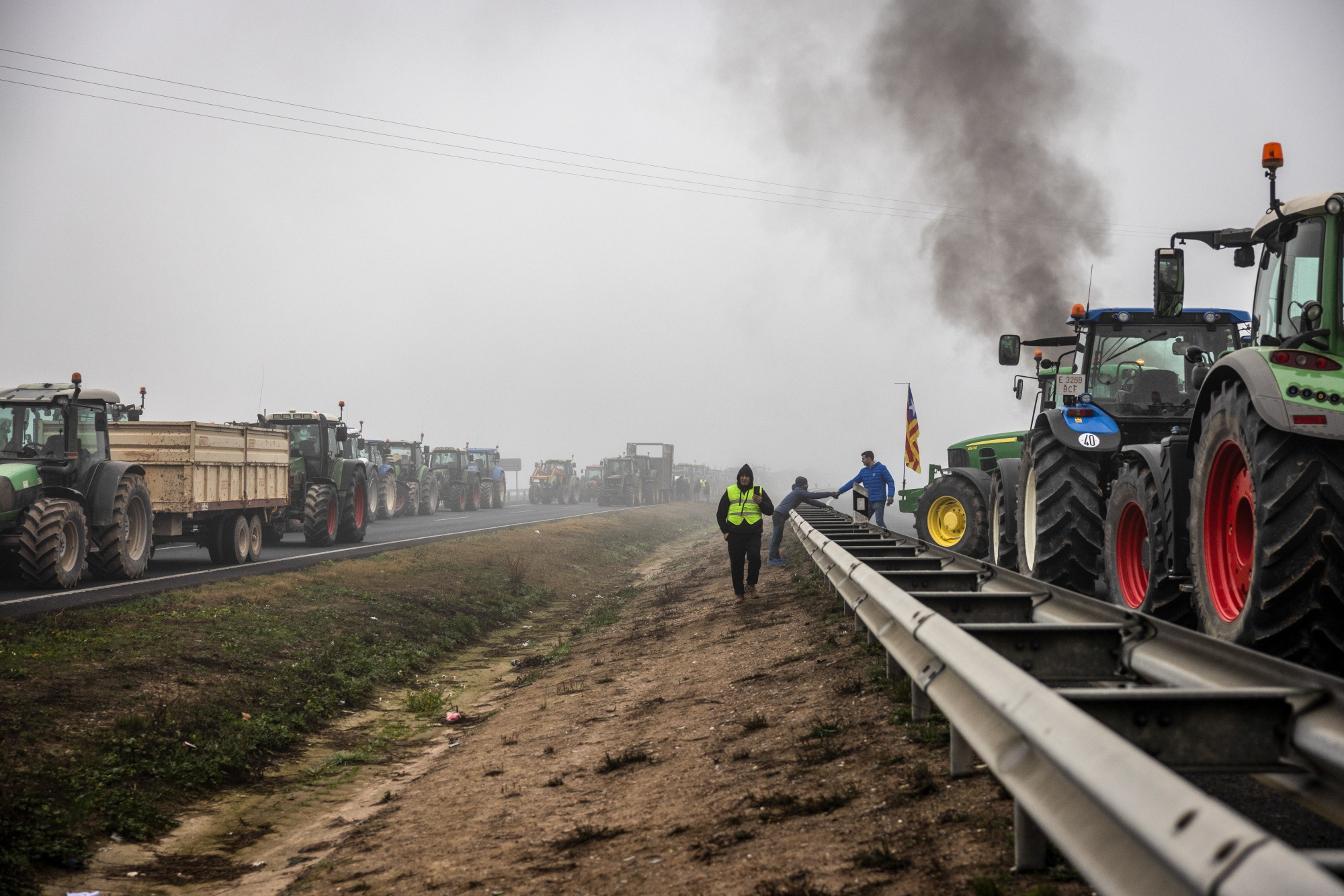 2月6日,西班牙农民在Fondarella举行抗议活动,封锁A2高速公路。摄影师:Angel Garcia/Bloomberg极右翼、欧洲怀疑论政党正试图抓住这一点。农民与民族主义政党在移民问题上存在分歧,因为他们需要获得移民劳工,但在反对雄心勃勃的绿色政策方面,两者似乎持相同立场,这是根据佛罗伦萨欧洲大学研究所比较政治学教授西蒙·杰里米·希克斯的观点。