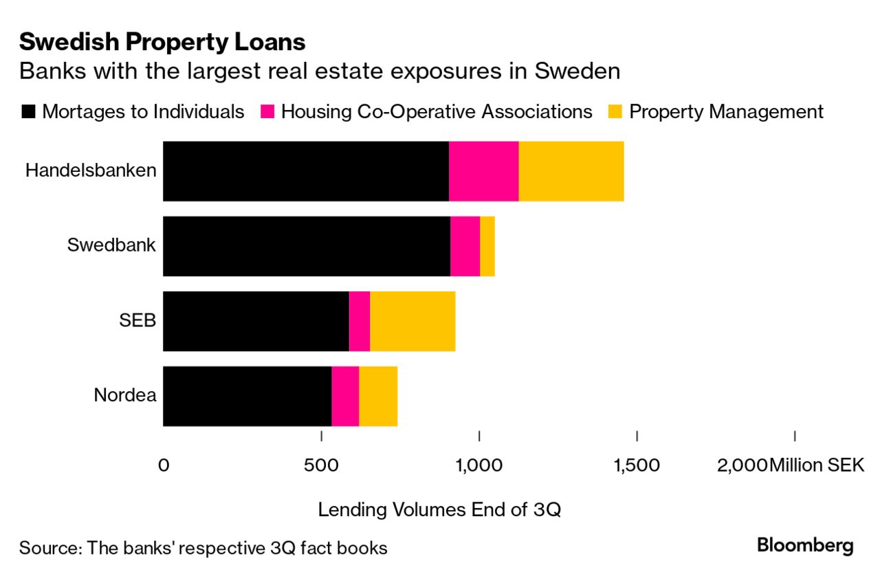 全球范围内的房地产价格受到了利率上升对估值的影响,商业地产开发商面临来自远程办公和零售行为变化的挑战。尽管许多瑞典银行迄今面临的信贷损失低于预期,但动荡仍然牵动着该国金融行业的注意力。