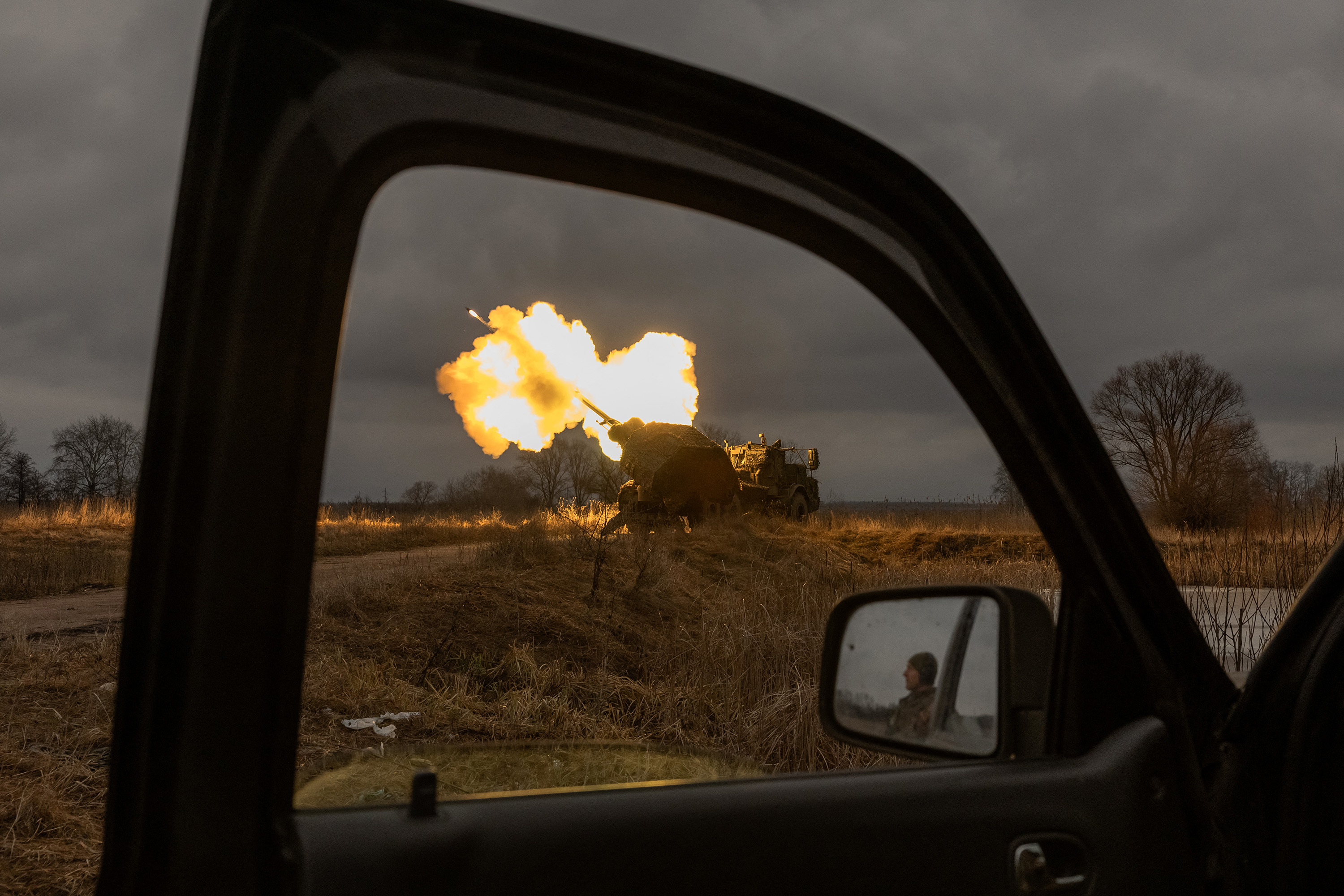 一架榴弹炮朝着俄罗斯在乌克兰顿涅茨克地区的阵地开火,日期为1月20日。