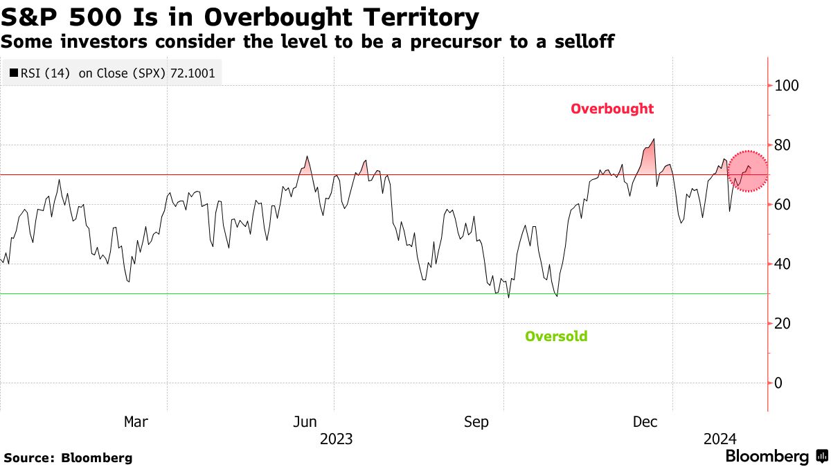 来源:彭博社科技公司通常受益于较低的利率,今年已经将美国股市推向历史新高,纳斯达克100指数将迎来第四个连续月的涨势。但这一涨势使标普500指数进入了所谓的超买区域,一些市场参与者认为这是未来下跌的前兆。