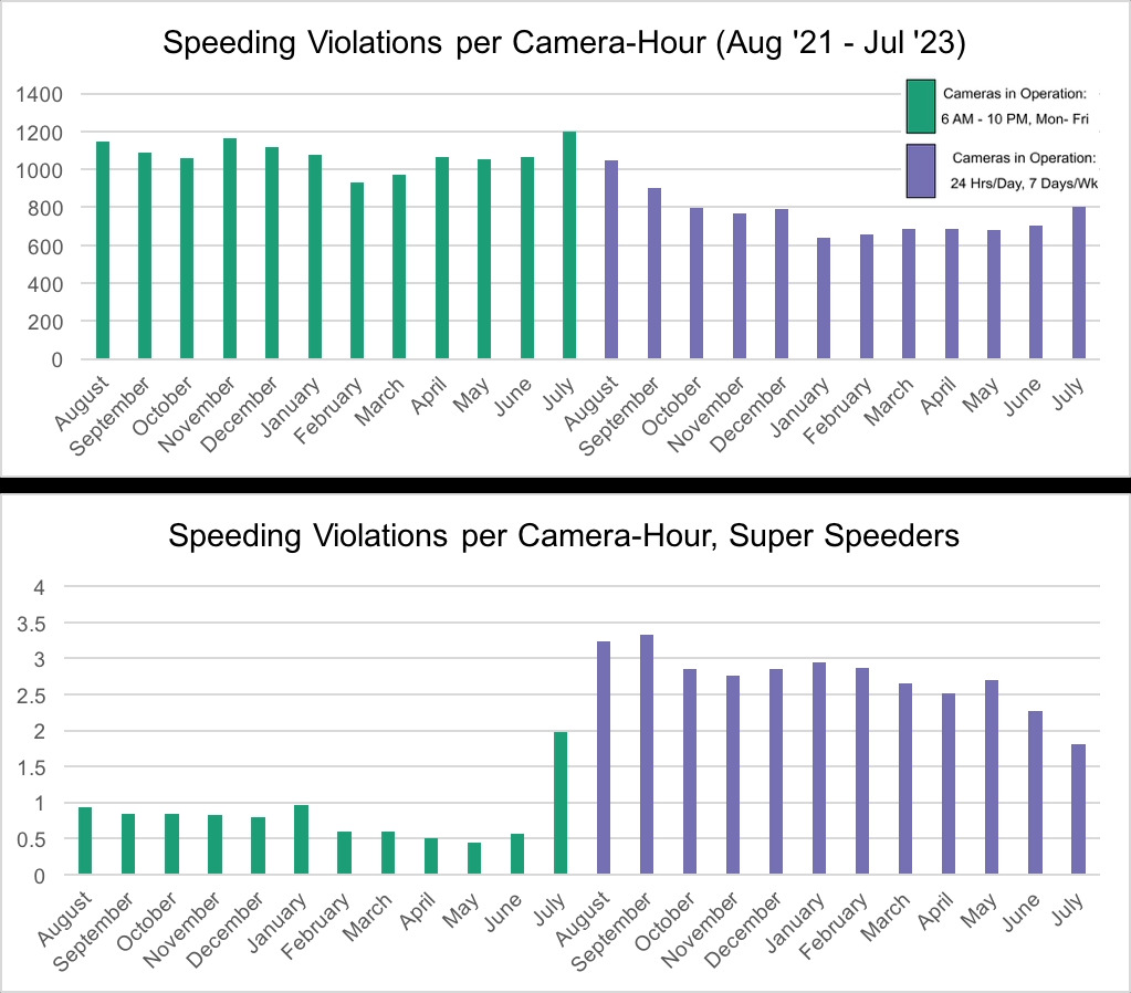 在同一时期,极端惯犯的基于摄像头的罚单每小时增加了234%。(新的夜间时间窗口也占了他们近40%的违规行为。)他们曾经占所有超速罚单的五分之一;现在接近五分之四。超级超速者平均欠下11083美元的未付罚款。