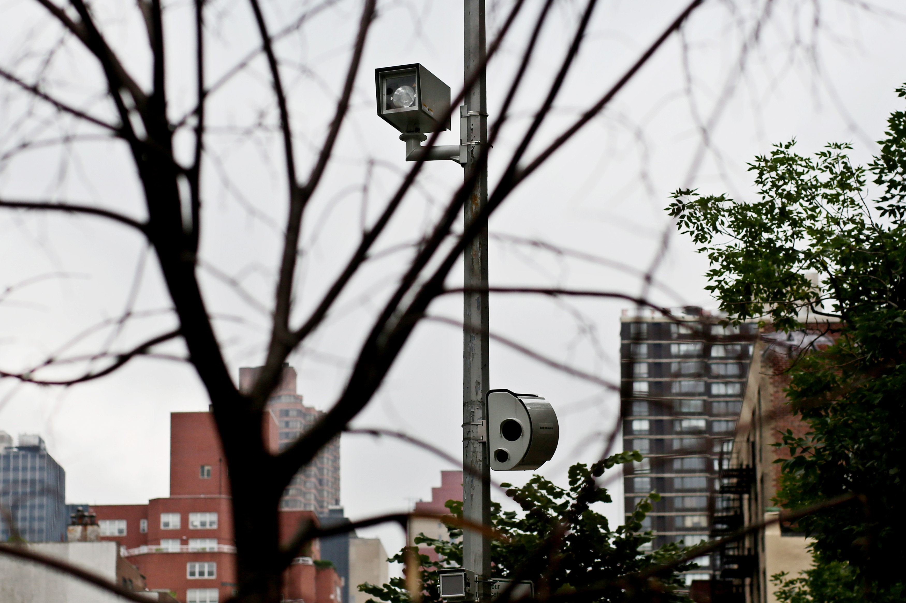 纽约市的一台测速摄像机正在工作。这些设备于2022年在五个行政区全天候运行。