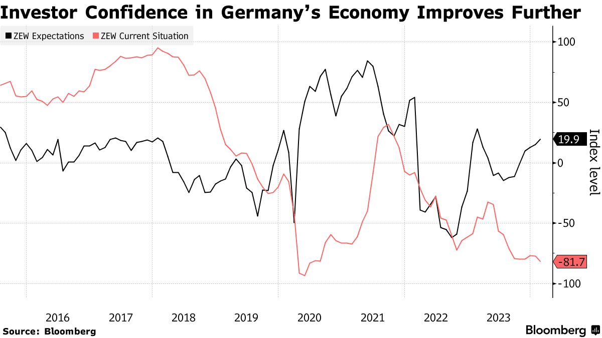 一项ZEW研究所的预期指数追踪德国经济在2月份从1月份的15.2上升到19.9,这给了人们希望,欧洲最大经济体的最糟糕的时期可能已经过去。这一改善部分是由于人们预期欧洲央行将在未来几个月内降息。去年,德国是唯一一个G7经济体出现收缩的国家,许多分析师预测2024年将再次出现收缩。