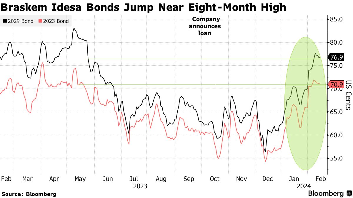 来自石化公司Braskem Idesa SAPI的债务为基金经理们带来了2024年26%的回报,是Bloomberg同行中最佳的。此前两年的下跌使债券价值蒸发了40%以上,原因是高利率和利润下降。