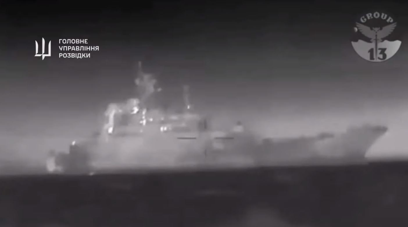 乌克兰军事情报表示,一支特别部队击沉了俄罗斯的大型登陆舰“凯撒·库尼科夫”号,该舰位于被占领的克里米亚的阿卢普卡,这是根据乌克兰军事情报在X社交媒体上发布的视频。据称,这次袭击使用了海军无人机。