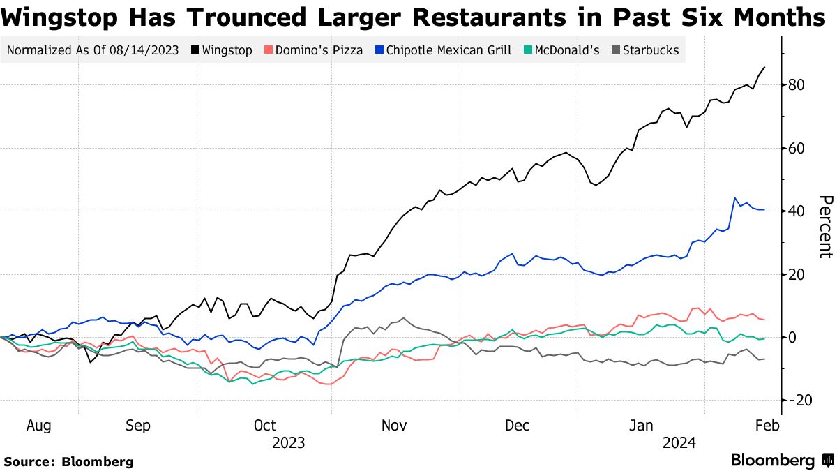 摄影师:Bing Guan/Bloomberg美国人对鸡翅的渴望是不可阻挡的。这推动了Wingstop Inc.股票在过去六个月上涨了80%以上,并在过去六个交易日中创下了五次历史新高。