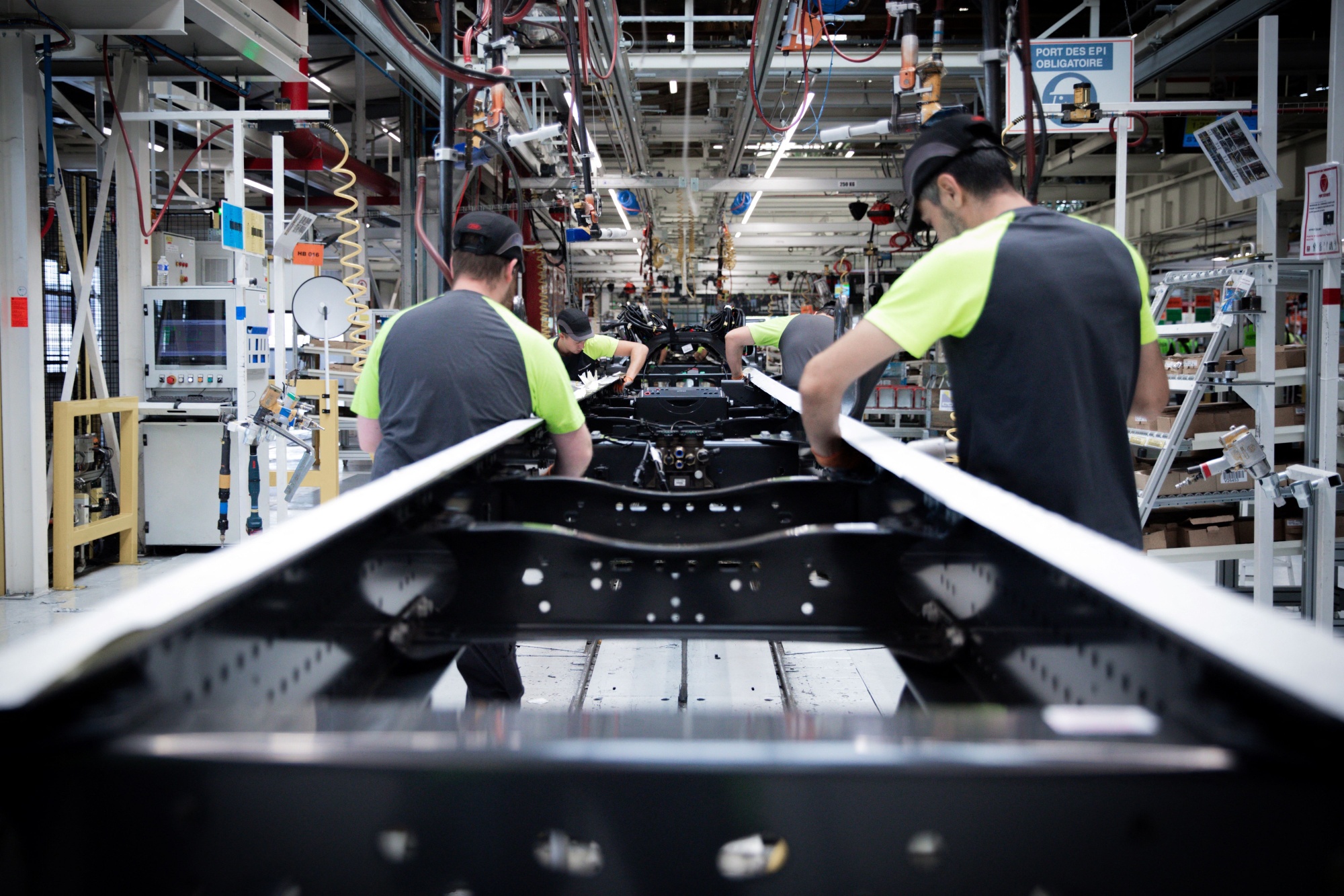 员工在法国科隆贝尔的雷诺卡车工厂工作。