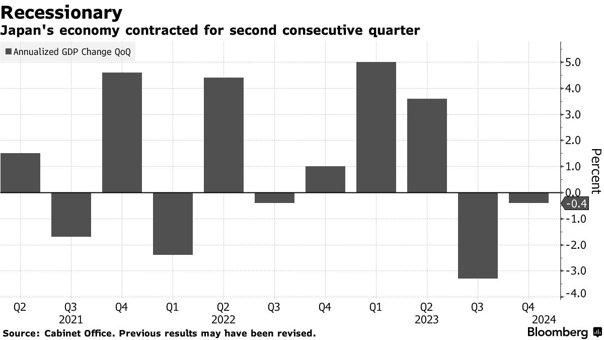 日本经济意外在2023年年底第二季度收缩,陷入衰退,使日本央行结束负利率政策的道路蒙上阴影。