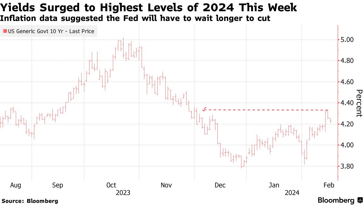 萨姆·奥尔特曼在2月13日与迪拜的奥马尔·阿尔·奥拉玛进行视频会议时。摄影师:Ryan Lim/AFP/Getty Images一系列美国经济数据即将对今年以来最高的国债收益率进行考验。