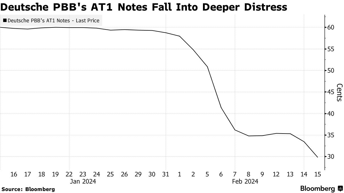 PBB的永续票据兑欧元下跌了4分,至约30分,根据彭博社编制的CBBT数据。其到期日为2027年的优先票据也下跌了2.5分,至90分。