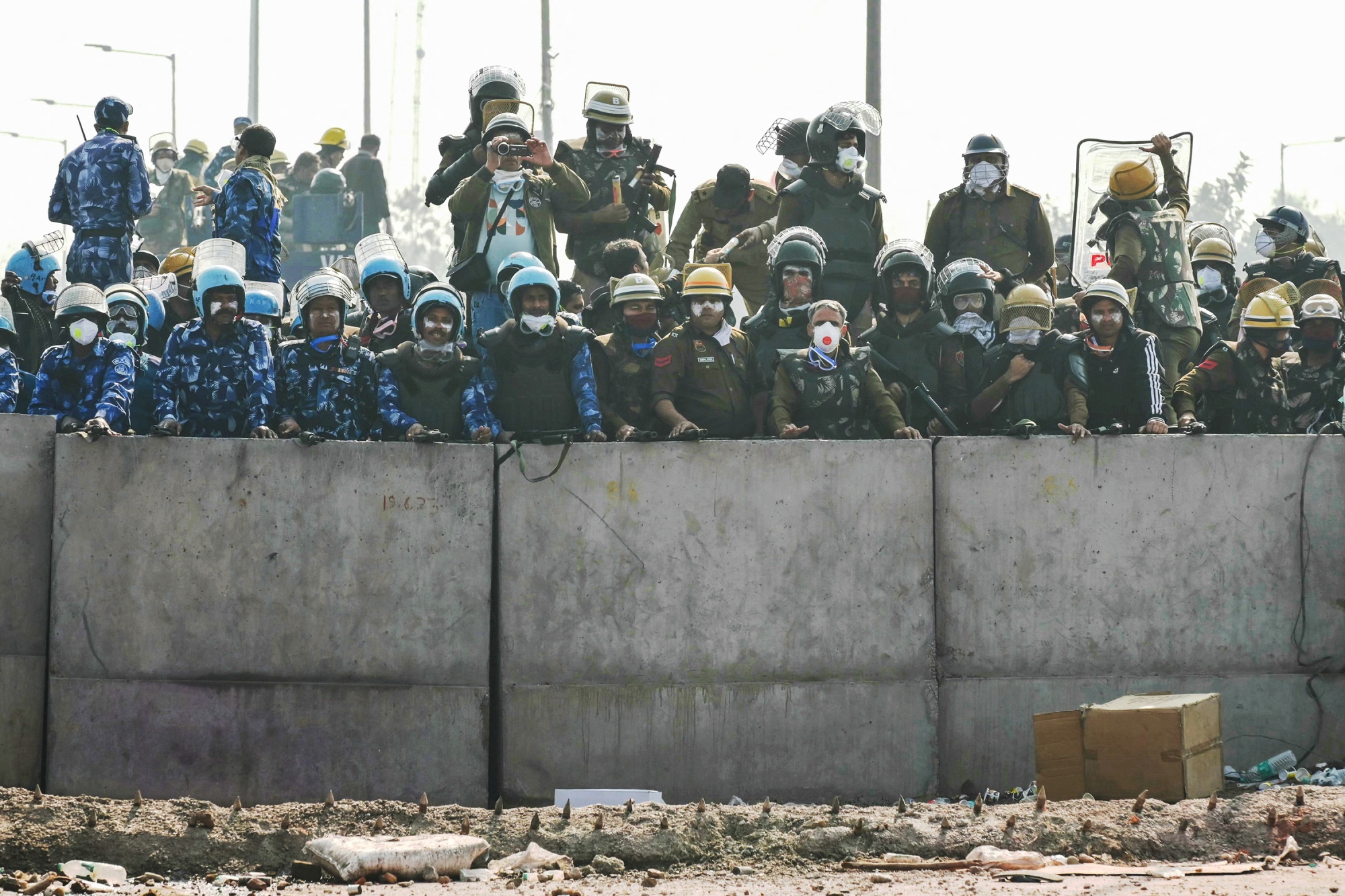自周一以来,警方在德里的大部分道路上设置了混凝土路障、集装箱、钉板和壕沟,以阻止数千名农民从周边邦进入首都。