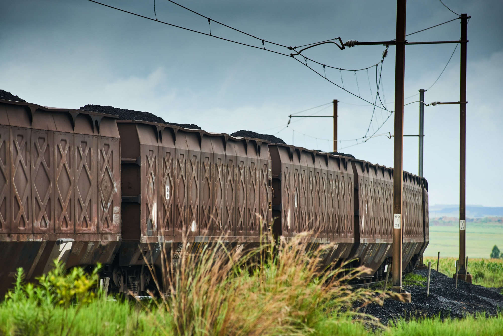 南非米德尔堡运载煤炭的货运列车。