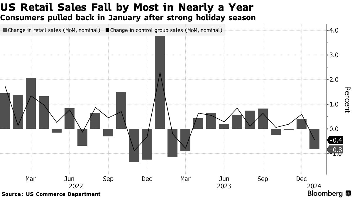 2024年1月美国零售销售额:假日后最大跌幅近一年 - 彭博社