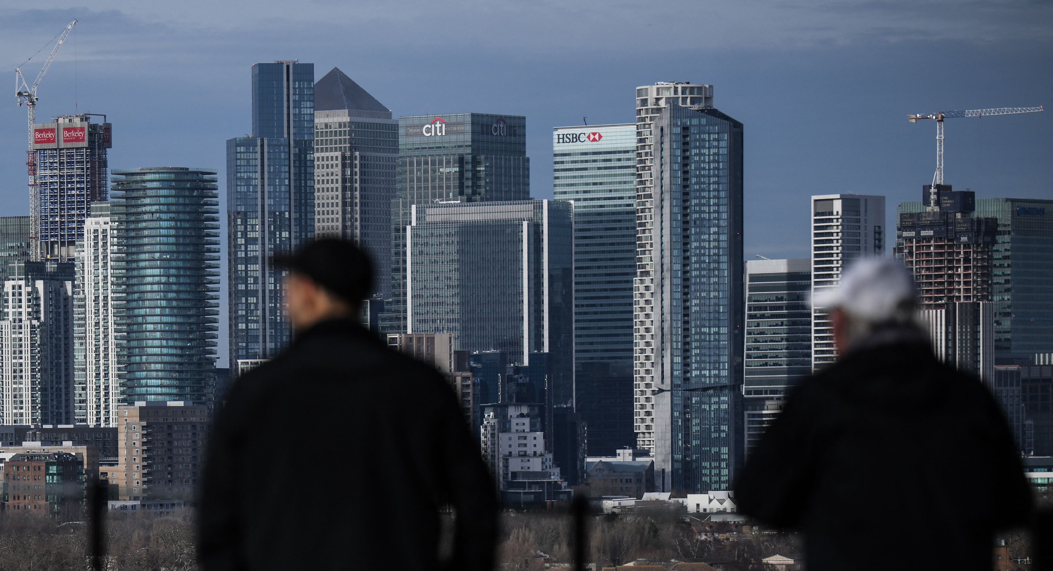 人们从格林威治公园眺望金丝雀码头金融区。丹尼尔·利亚尔/法新社/盖蒂图片社