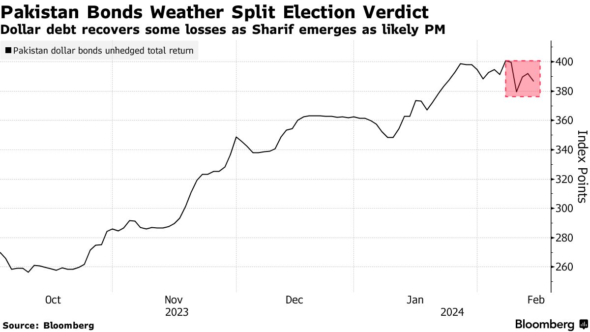 高盛集团表示,尽管巴基斯坦的选举结果支离破碎,但其美元债券将会反弹,因为新兴联盟的领导人们意识到经济危机的严重性,并将共同努力以确保国际货币基金组织的援助。