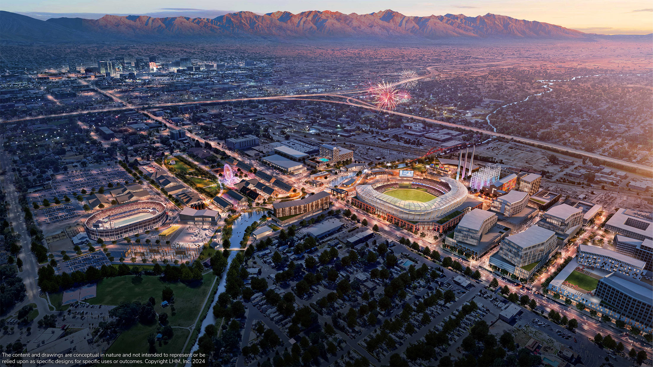 由Larry H. Miller 公司,犹他爵士队的前任所有者领导的联盟,周四发布了Power District西区的拟议综合开发的效果图,该开发项目包括零售和住宅空间、餐厅和一个棒球场。该公司打算在该项目上投资超过35亿美元,但他们表示公共资金也是必要的。