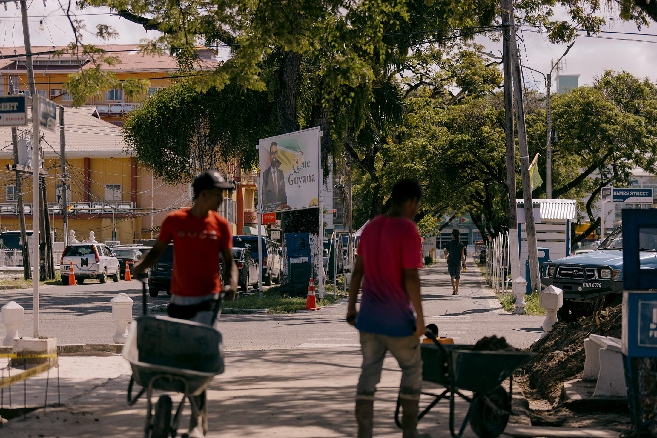 这种影响是显而易见的,也是可以感受到的。在乔治敦机场的入境通道上,高高悬挂着供应链物流和招聘等石油和天然气培训服务的横幅,这些横幅伸展在一长队游客的头顶上。其他横幅则突出了由美洲开发银行资助的新四车道高速公路的施工工作,该高速公路将取代目前将游客带入城市的颠簸、照明不足的道路。