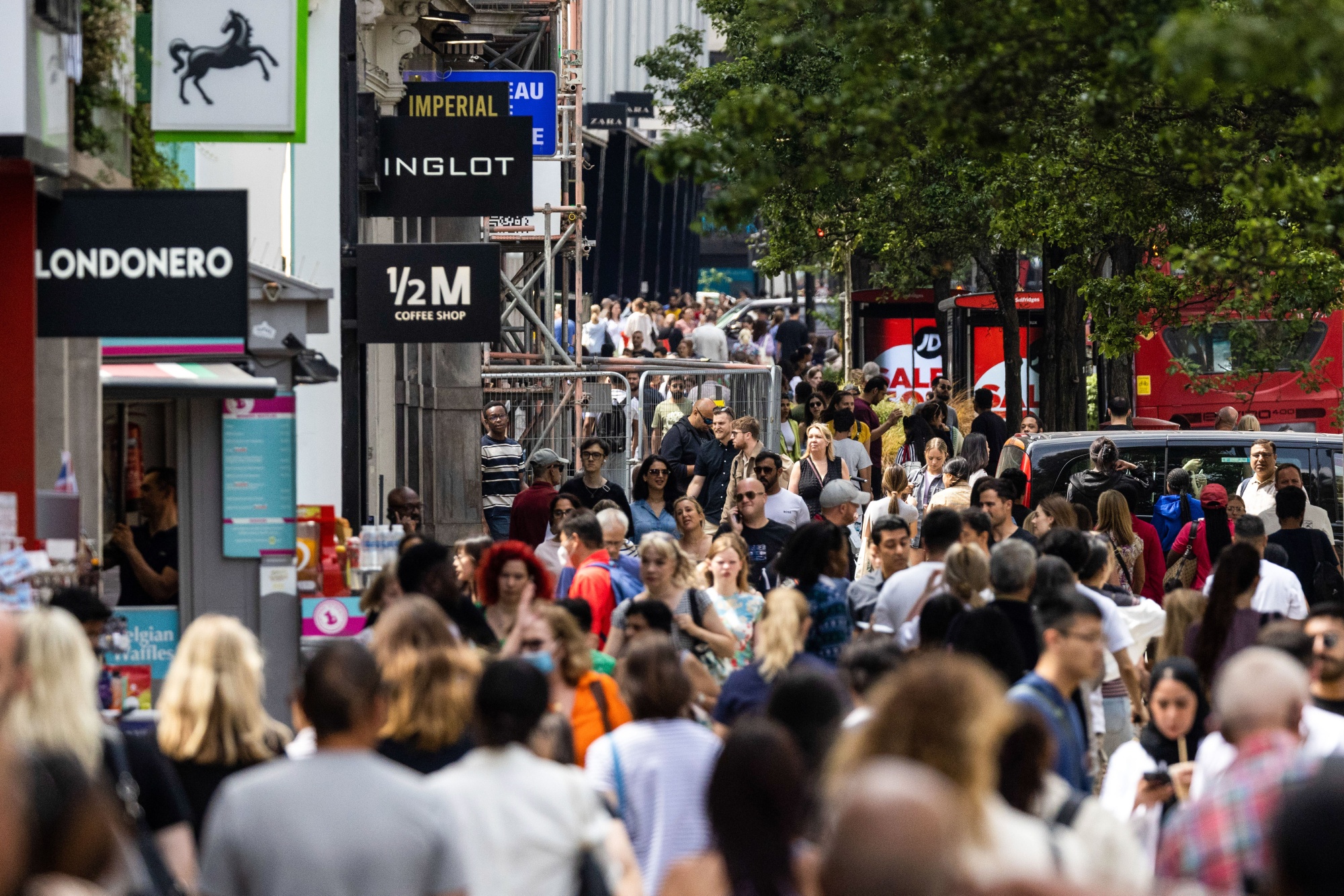 2023年6月的伦敦牛津街,去年零售目的地的游客数量强劲反弹。