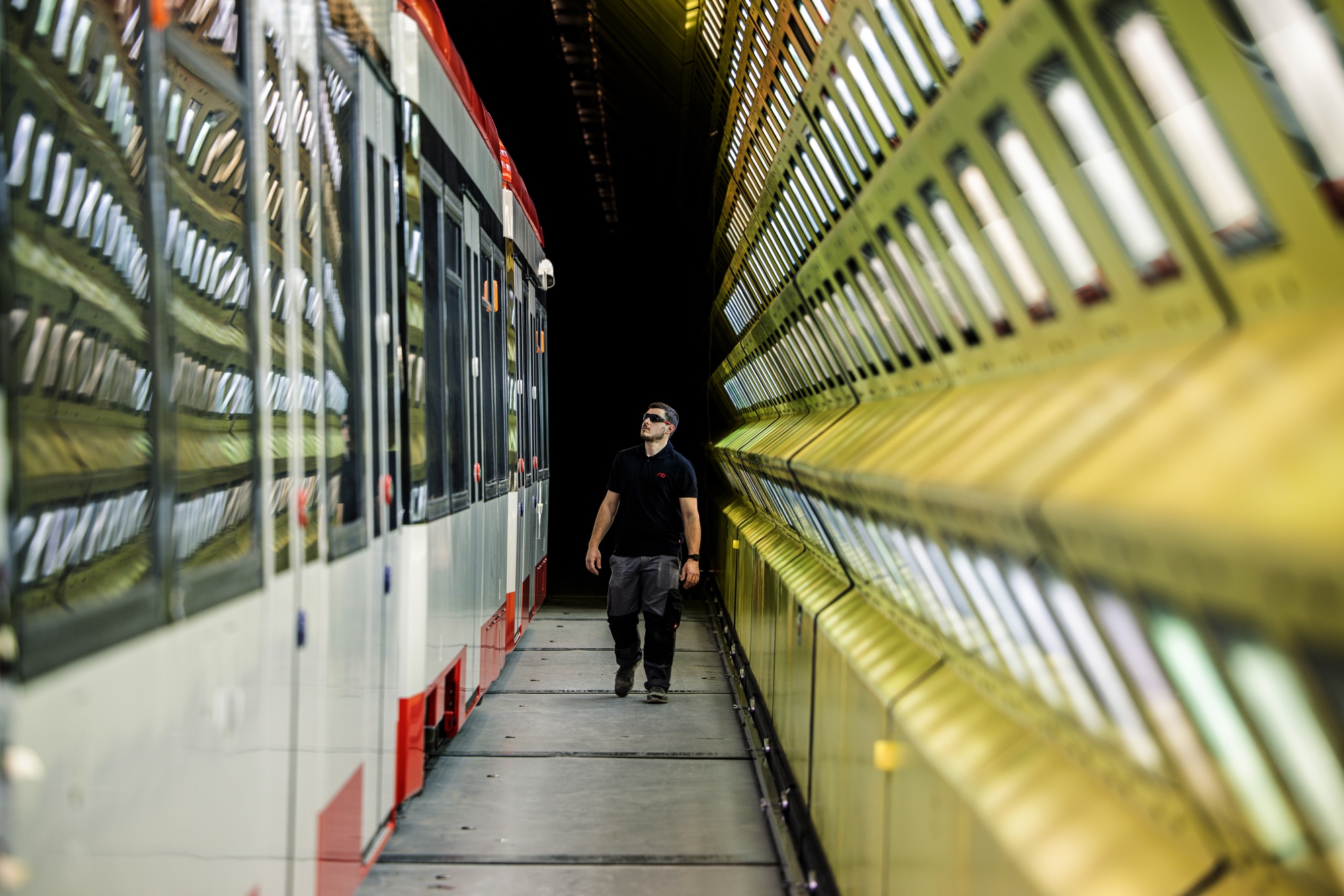 杜伊斯堡的旧车队可以追溯到上世纪80年代末和90年代初,没有空调,但这辆新车有,杜伊斯堡交通运营商DVG的铁路车辆技术负责人安德烈亚斯·奥弗(Andreas Offer)说。奥弗和他的同事们正在监控空调,在Rail Tec Arsenal的测试中,以确保它不会消耗过多电力,同时保持列车凉爽。更高效的系统消耗更少的能源,并且在炎热天气下更不容易出现故障,从而使乘客遭遇不舒适甚至危险的情况。