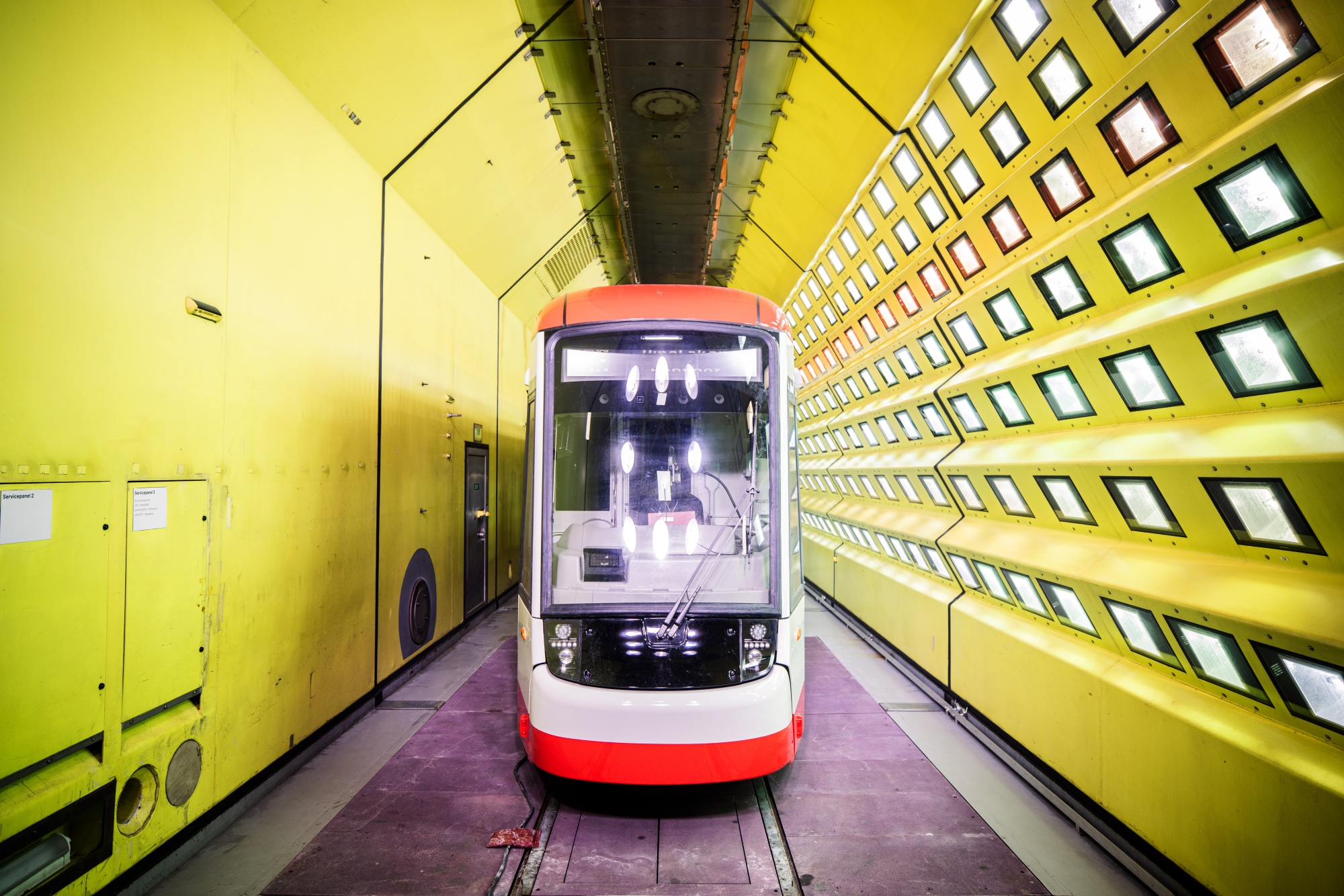 有人在挤满的有轨电车内感到炎热。然而,并没有乘客,只有数十个加热器——它们站在过道上和座位上——旨在模拟乘客。有轨电车并不是在城市街道上飞驰,而是停在维也纳的一个气候隧道内,距离它将来的工作地杜伊斯堡有大约600英里的路程——一旦它通过了气候考验。