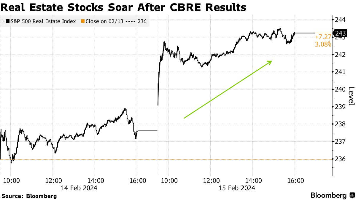 全球最大的商业地产公司股价随后上涨了超过8%,达到了近两年来的最高水平。像Cushman & Wakefield和Jones Lang LaSalle这样的较小公司的股票也分别收涨超过8%。