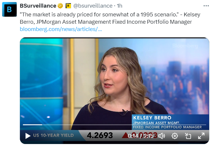 JPMorgan资产管理的Kelsey Berro认为,有很多噪音,这意味着你需要坚持较长期的观点。她仍然喜欢较长期的国债,因为有迹象表明经济正在放缓,而美联储明显倾向于降低政策利率,即使低于一些人的预期。