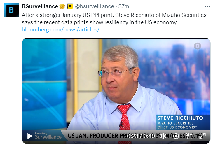 政府今天报告称,美国生产者价格在1月份上涨超出预期,包括影响美联储偏爱的通胀指标的领域。这进一步加剧了本周早些时候消费者价格高于预期的情况。