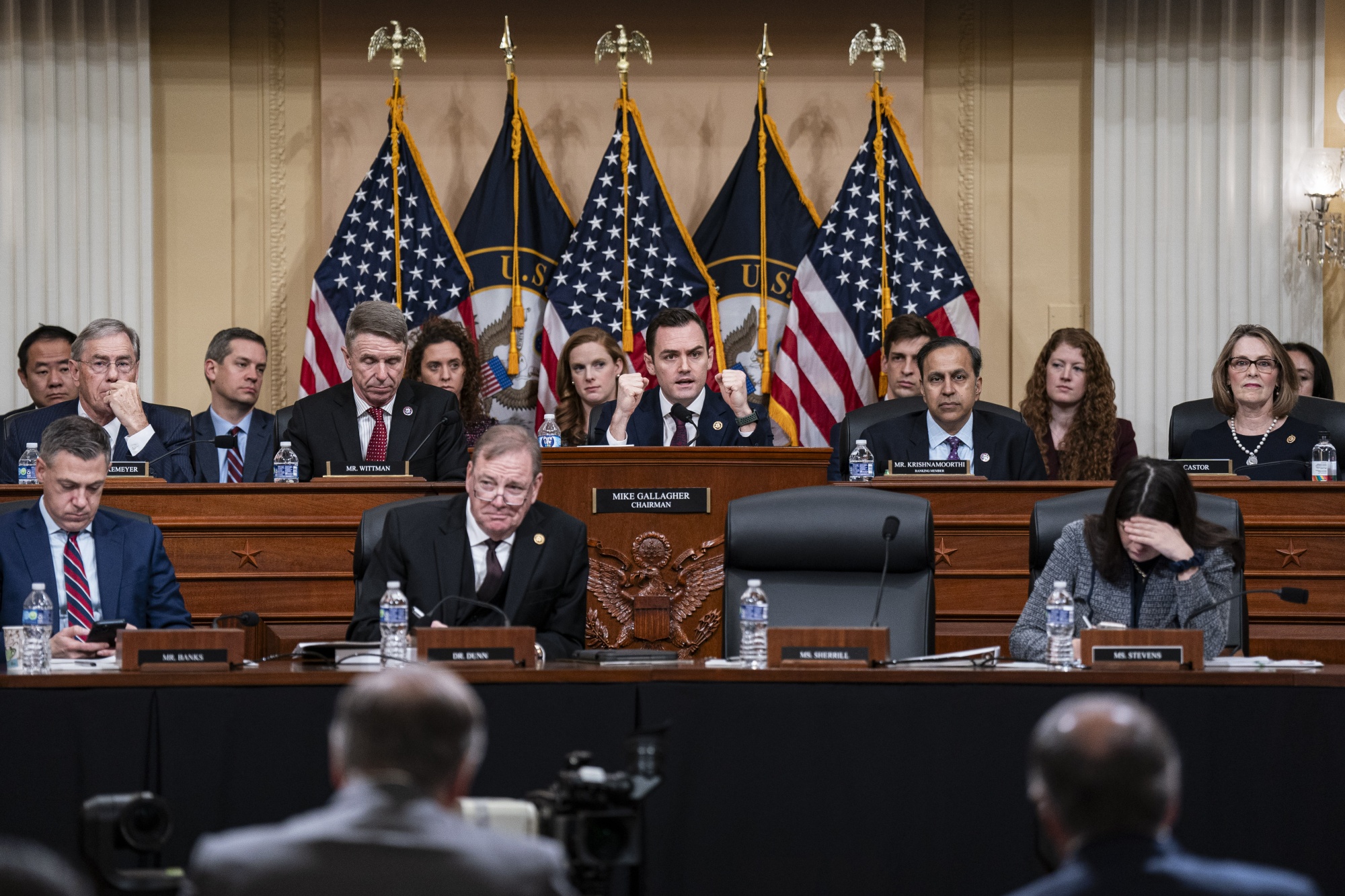 美国众议院对美国与中国共产党战略竞争的特别委员会于1月30日在华盛顿举行会议。威斯康星州的共和党议员迈克·加拉格(Mike Gallagher)坐在后排中央,担任委员会主席。他右边的伊利诺伊州的民主党议员拉贾·克里希纳穆尔蒂(Raja Krishnamoorthi)是该小组的排名第一的民主党人。摄影师:阿尔·德拉戈/彭博社