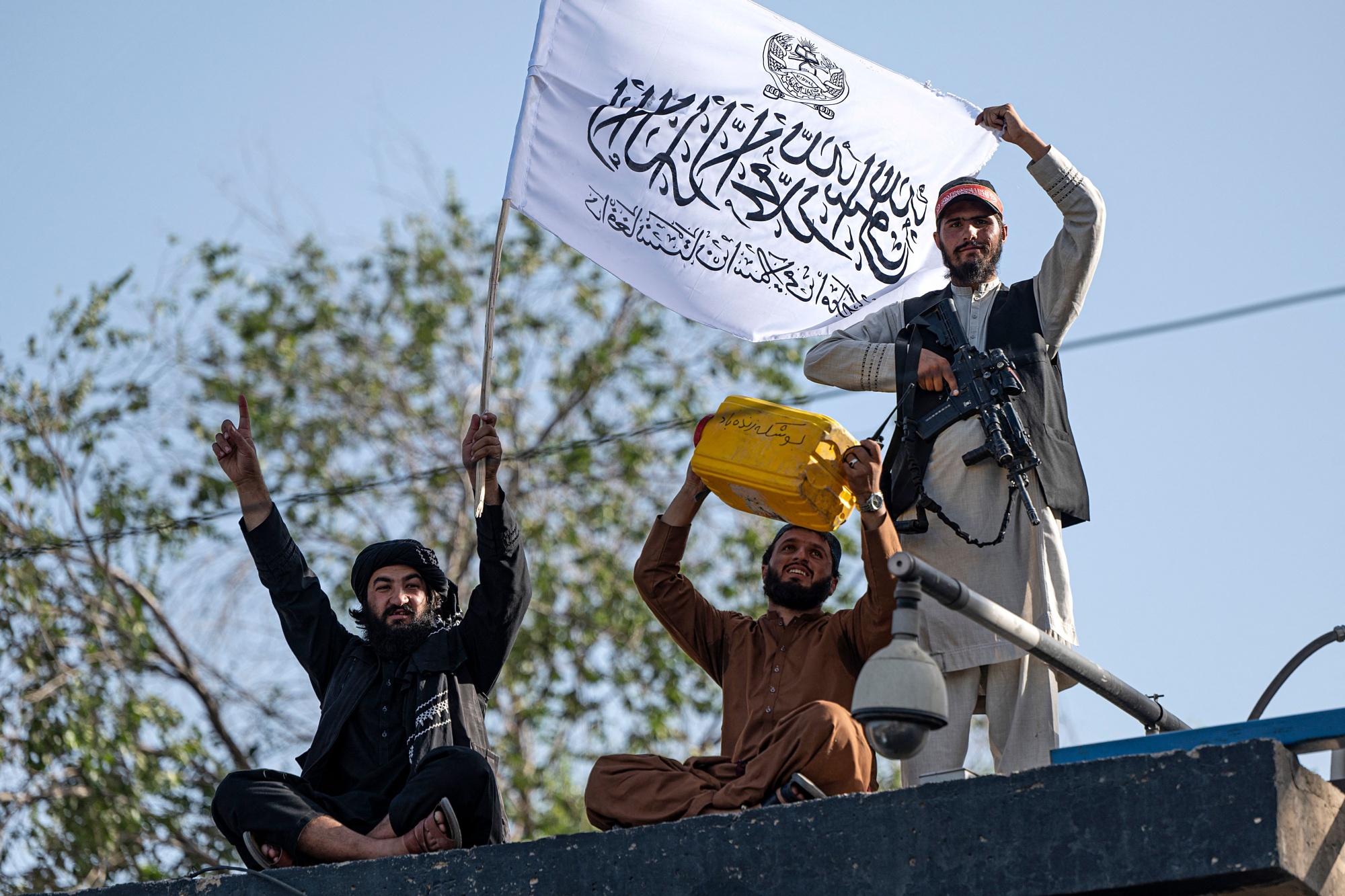 塔利班成员在喀布尔庆祝2021年美国支持的阿富汗政府倒台周年纪念。