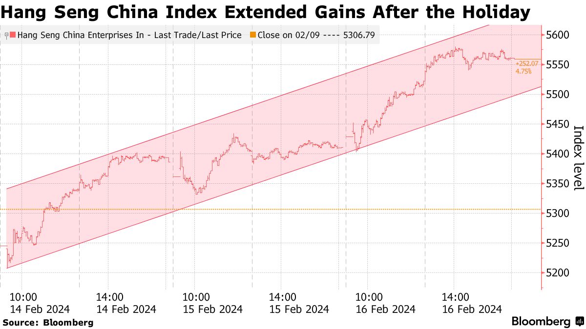 “从中国新年数据的初步了解来看,从假日酒店销售到澳门游客人数,都显示出服务相关行业的亮点,”瑞士联合银行北亚股票咨询主管Linda Lam说。“A股应该会以更强劲的姿态开盘,继续在国家支持的推动下恢复股价,”她指的是在内地交易的中国股票。