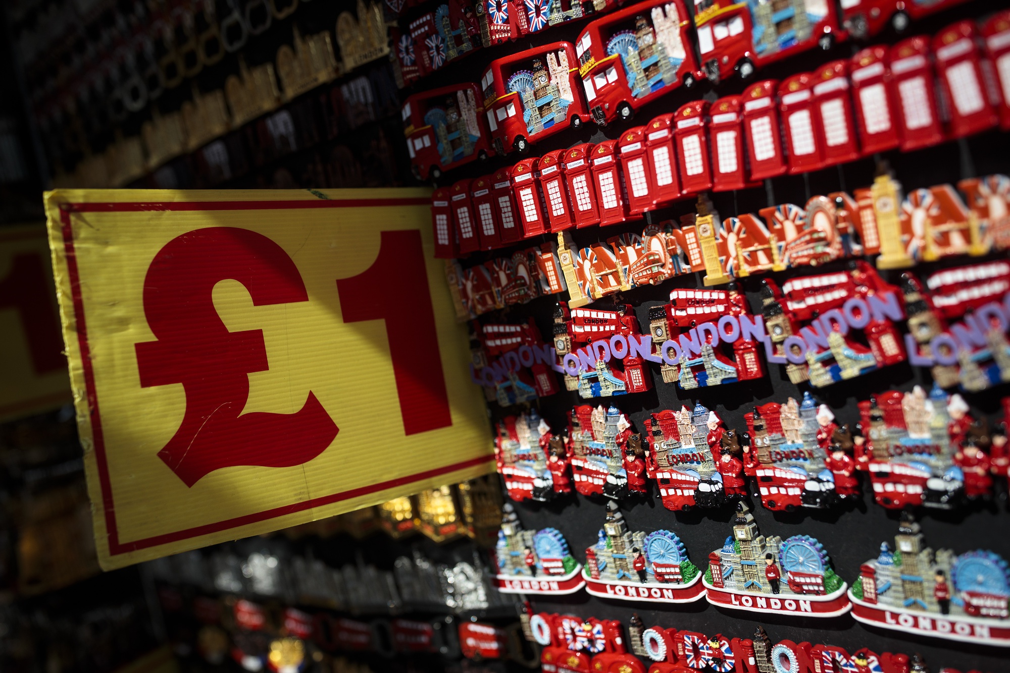 伦敦皮卡迪利广场的一个货摊上的英镑符号。