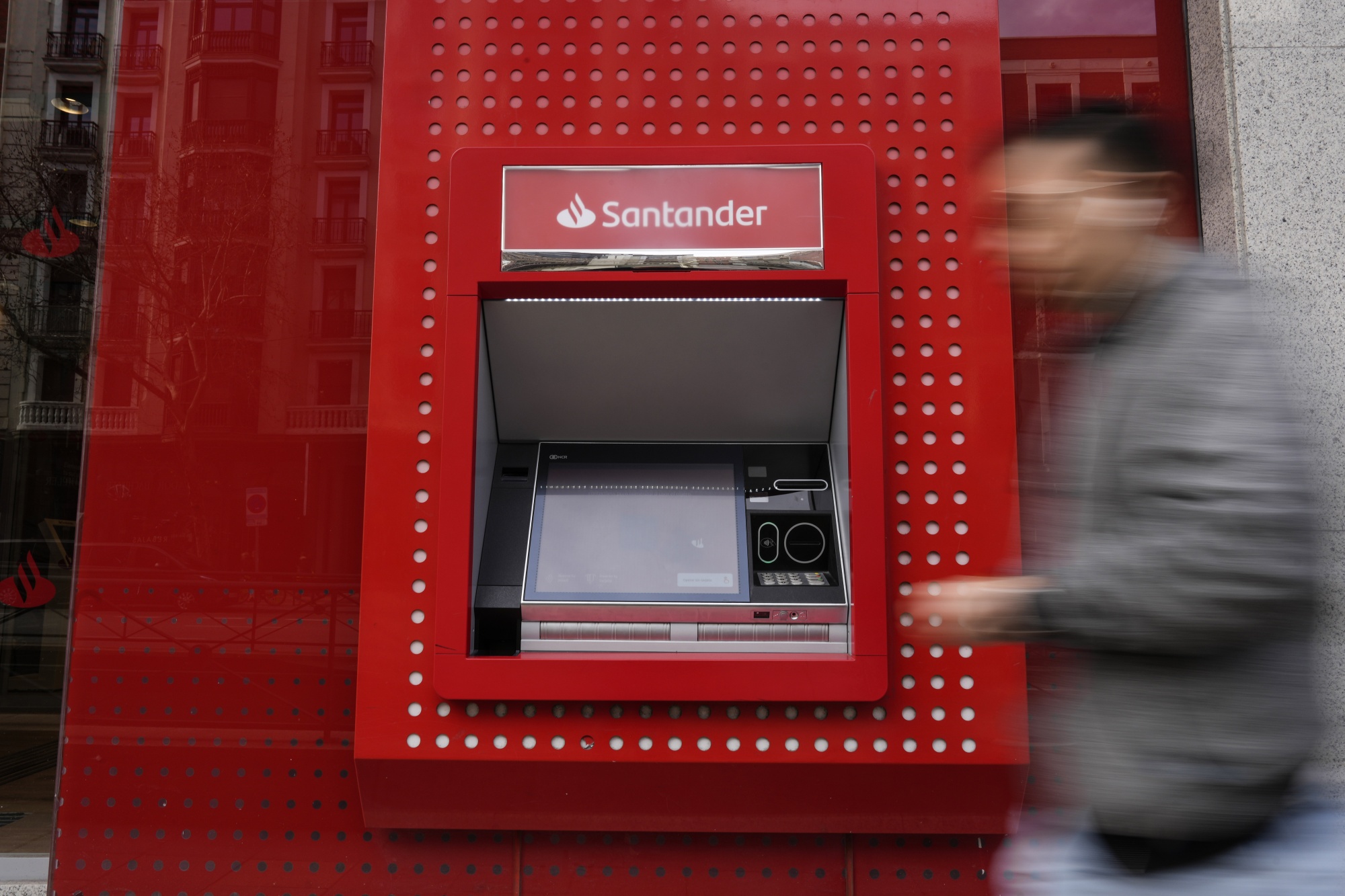 马德里一家桑坦德银行分行外的自动取款机。