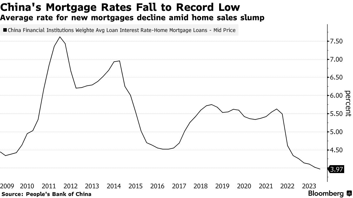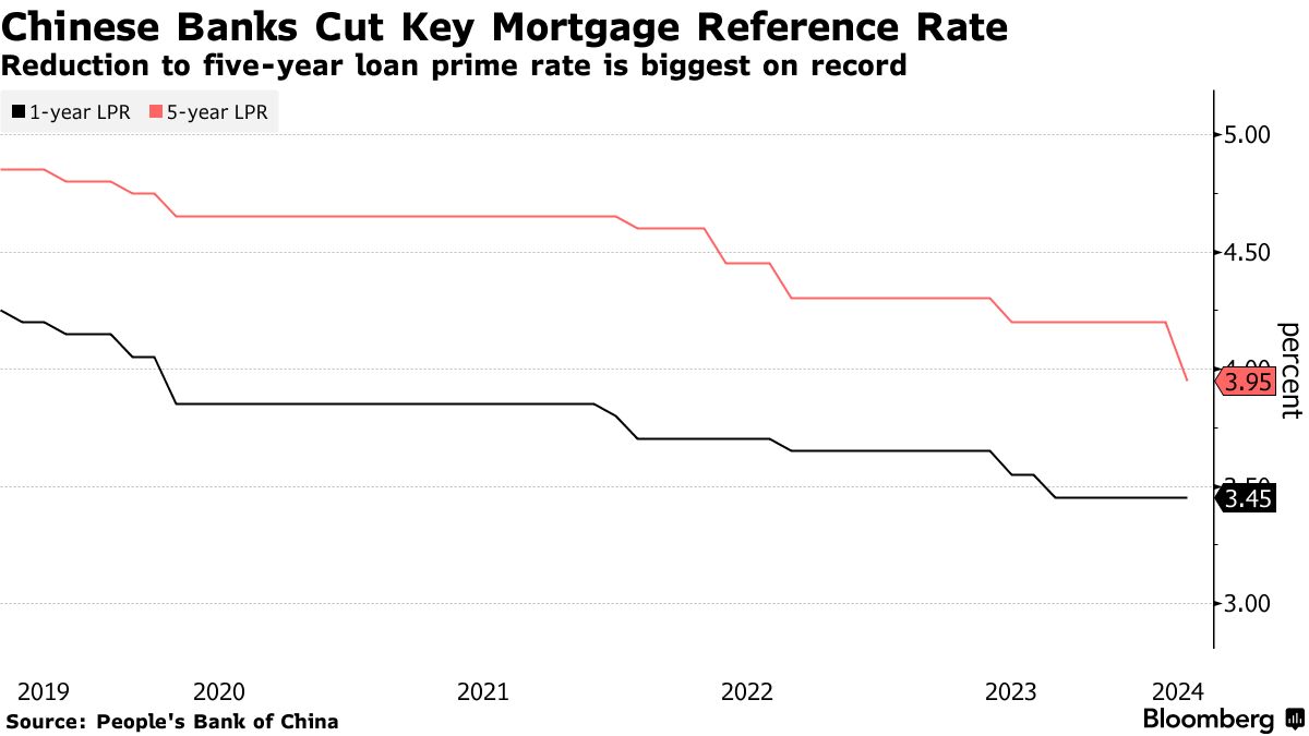 中国银行大幅削减了抵押贷款的一个关键参考利率,这表明中国正在加大对房地产行业的支持力度,以刺激需求。