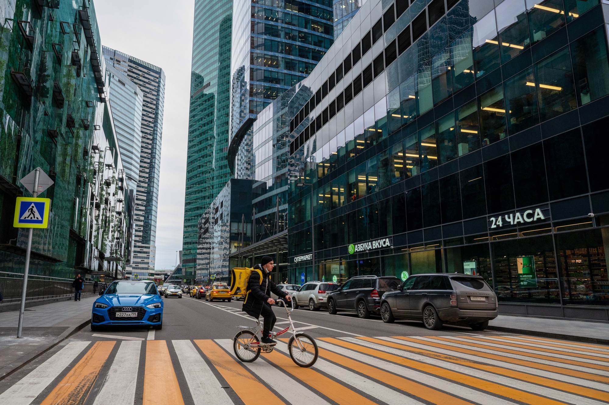 Yandex的自行车快递员在2021年骑行在莫斯科市。