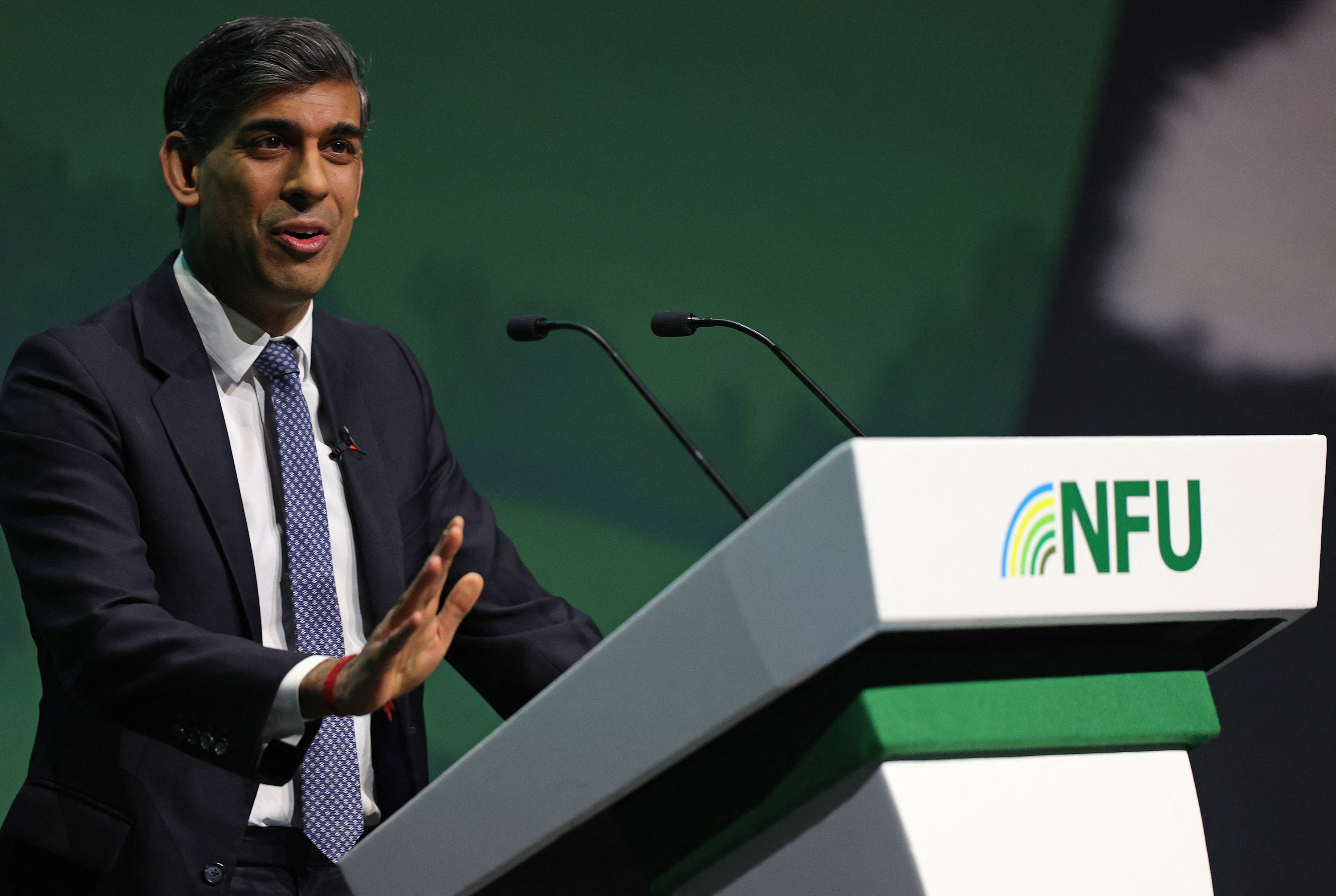 里什·苏纳克告诉英国农民,他“站在他们这一边”,因为英国首相试图在预计将在今年下半年举行的大选前重新赢得他执政的保守党在农村的支持。