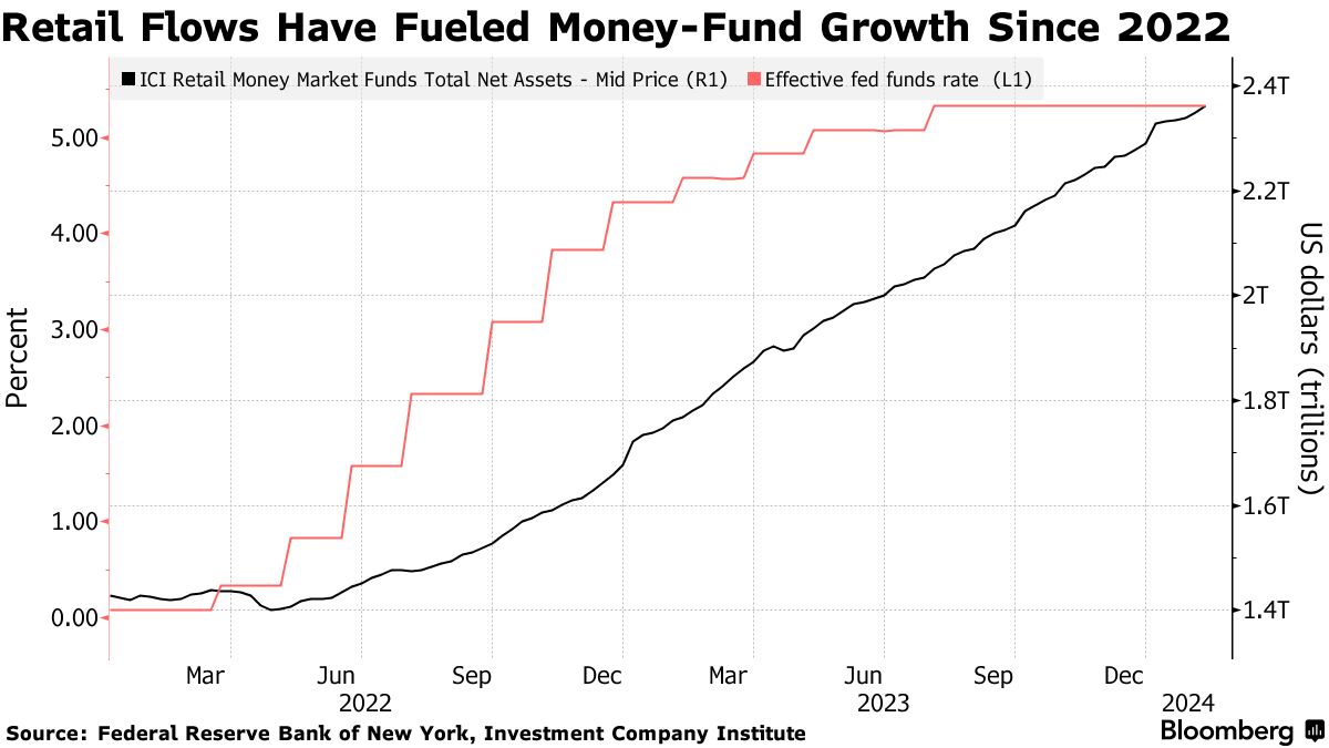 ICI的数据显示,自2022年3月以来,零售投资者占流入货币基金空间的1.198万亿美元的约80%,机构占其余部分。