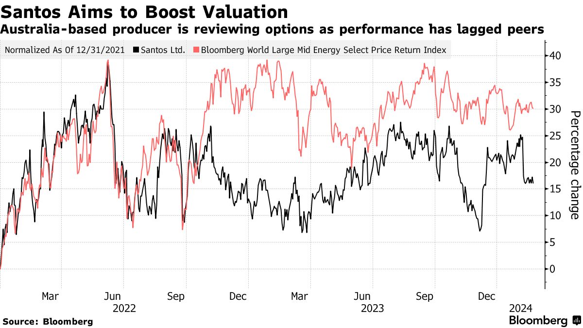 澳大利亚石油和天然气生产商 Santos Ltd. 上个月结束了与一家更大对手的合并谈判,称其全年收益因价格下跌而下滑,但表示其投资组合仍在吸引兴趣。