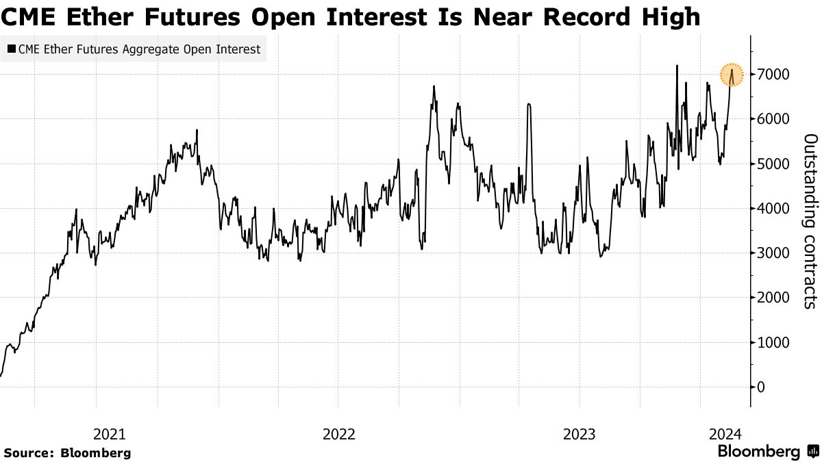 在衍生品领域,芝加哥商品交易所(CME Group)的以太期货市场的持仓量接近创纪录的高位。未平仓合约的增加表明机构投资者对以太相关投资的需求。