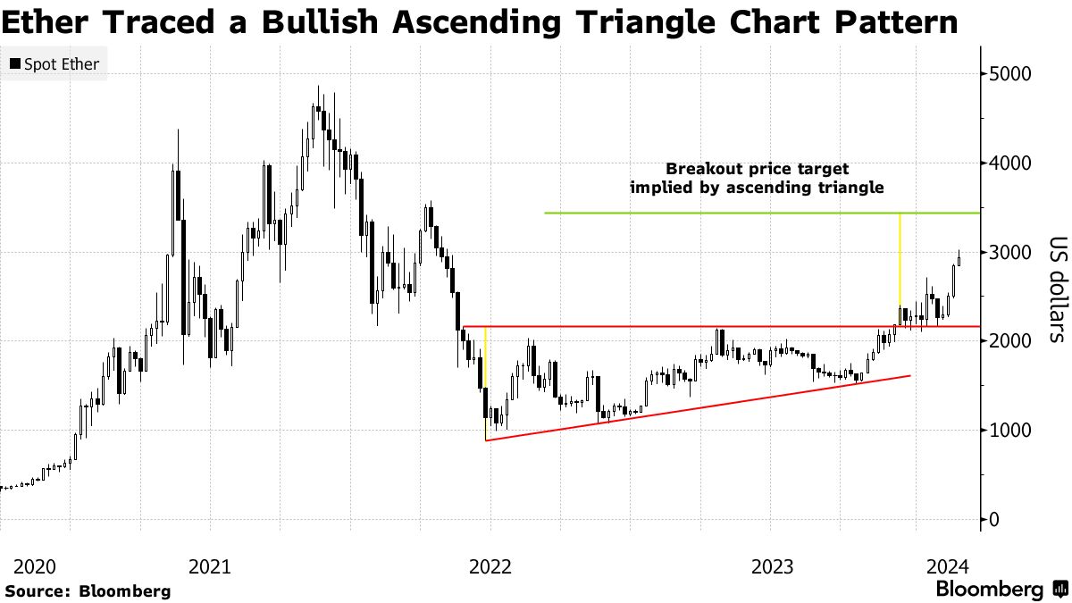 以太坊代币在某种程度上超过比特币,部分原因是有人猜测下一波现货美国加密货币交易所交易基金将专注于第二大数字资产,预示着投资者需求增加。